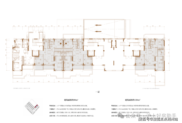 建面约120㎡3房2厅2卫/90㎡2房2厅2卫(一层下叠):
