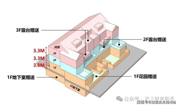 3、从户型设计来看,一楼户型附赠超大地下室及双层庭院;二楼户型附赠星空露台;三楼附赠露台及其他空间;户型实得率最大可以超过200%!平均也能达到约150%左右!