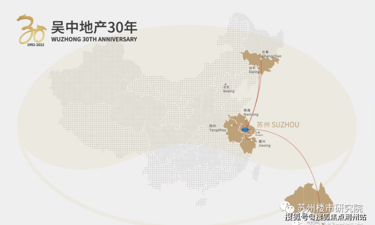 吴中地产集团自1992年成立以来,深耕苏州30年,跻身“中国百强房企”、“江苏省开发企业50强”第七名、“苏州市房地产开发企业综合实力20强”前三名、苏州品牌房地产开发企业影响力第一名。吴中地产布局全国,走向世界,百余个项目砥砺开发,为数十万业主营造美好生活空间,足迹遍及长春,南通,嘉兴,四平,太仓,常熟,吴江、墨尔本等。