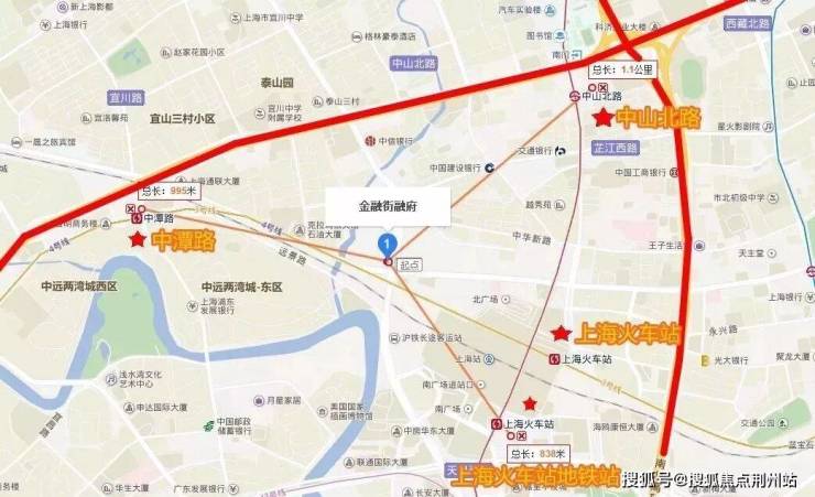项目周边轨交线路较多。项目距离上海火车站(1/3/4号线)804米、中潭路站(3/4号线)1085米、中山北路站(1号线)1116米、江宁路站(13号线)1238米,选择的空间也比较大。
