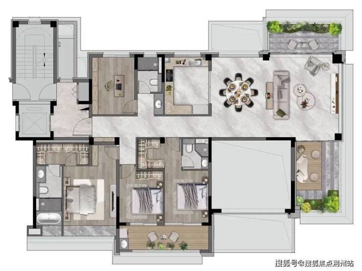 从结构的纵向突破,到光影的系统优化,再到景观的立体融合,万濠东郡四代宅所呈现的,并非孤立的产品亮点,而是一套层层递进、逻辑严密的完整空间体系。其精髓在于:兼得别墅的纵向气场与大平层的横向尺度,提供一种“空中别墅”般的居住体验。