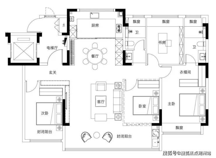 建面约145㎡,设计为四房两厅两卫,无论是三代同堂,还是多胎家庭,皆可满足。