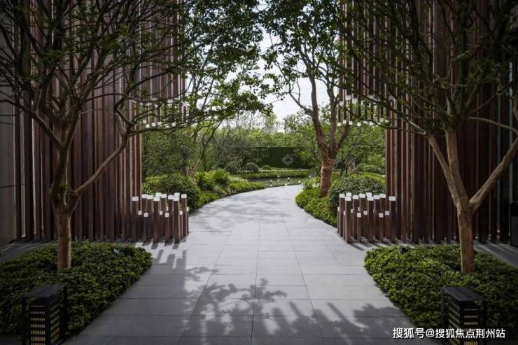设计师希望在城心繁华的闹市中营造一处自然生态的静谧之境,找到都市与自然的平衡点,为居住在此的市民们创造高品质的生活。极力营造不同于老城区风景的景观体验,突出场地的辨识度,提升老城区的品质感前庭区域极为惹眼,前景镂空的景墙与植物形成虚实的含蓄空间,两株对植小型乔木,形成夹道欢迎的礼宾意境。
