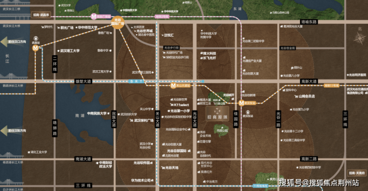 地铁2号线、地铁11号线武汉东站站仅约600米距离,高效连接全城的同时,由民族大道、关山大道、光谷大道,三环线构筑四纵四横立体路网,确保出行的从容。