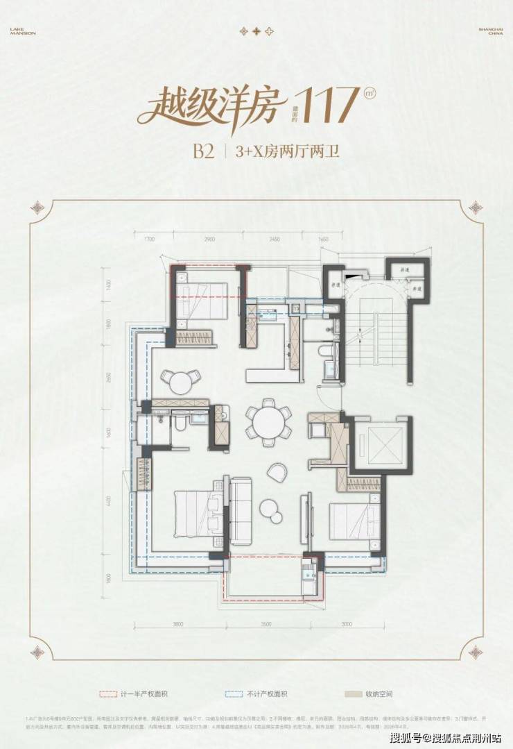 约117㎡灵动3+X房:在99㎡基础上,多出一个“X空间”——可作书房、儿童房、茶室或独立储藏间,随家庭生命周期自由切换。客餐厅尺度进一步升级,三代同堂亦不局促。