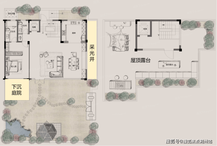 在产品设计上,秦塘和颂和帝京赋类似,但边套占比更高,达到69%户型上,同样是一楼庭院+下沉庭院+屋顶露台的设计,部分户型可以拥有南北双庭院和双露台值得一提的是,秦塘和颂拥有目前市面上最高的地下室,达到了6.7-8.4米