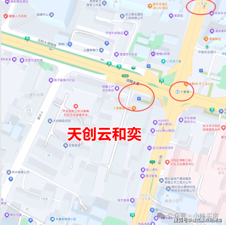 从大区位来看,天创云和奕项目位于汉阳区王家湾核心商圈,具体在十升路和汉阳大道交汇处,属于二环内的核心板块。