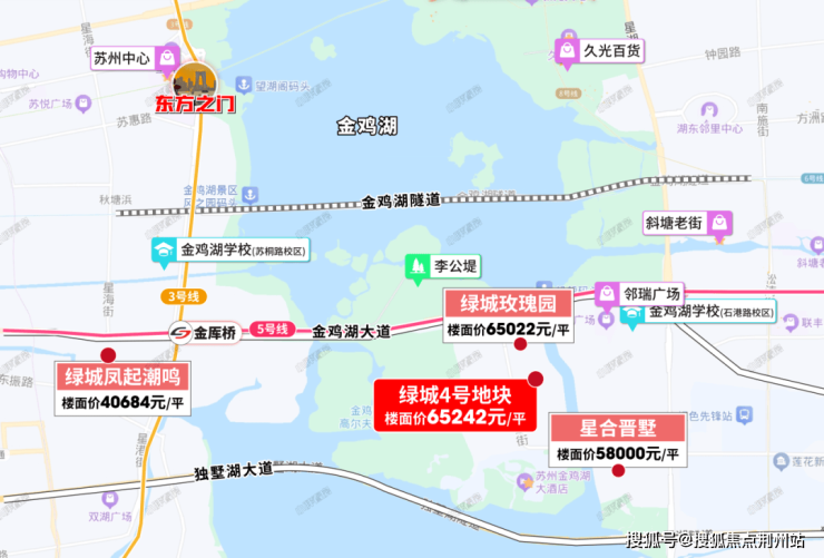 配套上来说,也是比较齐全的。交通上来说,北面靠近金鸡湖大道,直接连接湖西和湖东,往西能上东环,基本上能快速去往核心区。南面靠近独墅湖大道,连接东南环,东面有星湖街,直接串联湖东。北面还有金鸡湖隧道,连接湖西和湖东!
