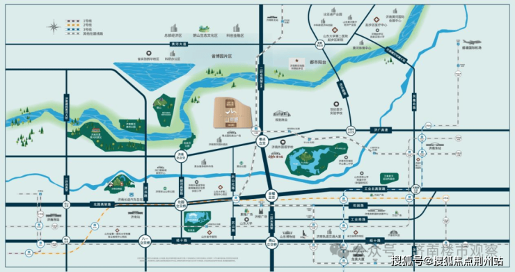 山河樾位于济南核心的二环东路,不仅有TOD交通枢纽的赋能,还有着全方位的教育和生态资源覆盖,是一个建筑面积40万方的生态教育大城。