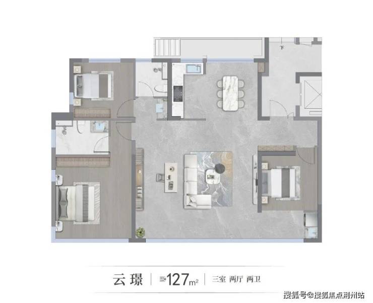 建面约127㎡洋房户型,约6.3米宽厅搭配约9.3米贯通式双阳台,南向全景落地窗,整体互动空间更舒适,且采光、观景更佳。侧厨设计,餐厅、客厅通透性更舒适,北侧落地窗搭配北侧超大设备平台,无疑多了一个拓展空间。