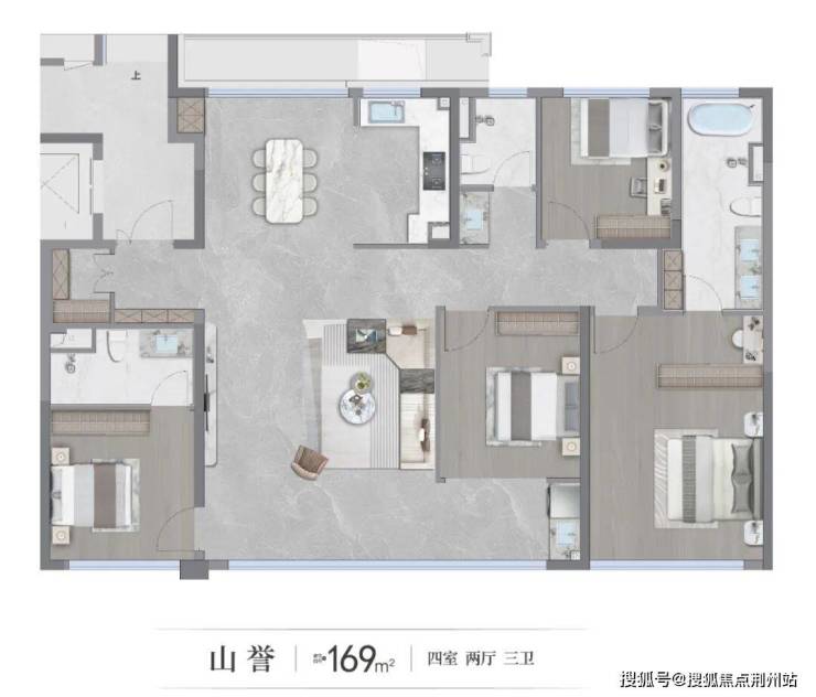 建面约169平洋房大平层户型,无论是得房率还是空间尺度,都可与市面上180-200平户型媲美;入户超大玄关+超大800库收纳间,这是大平层产品专属;超大宽厅+贯通落地窗阳台,餐厅+落地窗+设备平台,你就说这么大空间,是不是太奢了?南向双套房设计,老人房独立卫浴+观景落地窗,这谁又能不喜欢?如此奢阔洋房,用不了300万就能拿下!