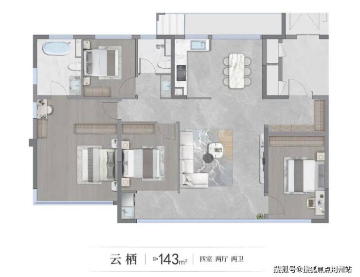 建面约143平南向四面宽经典户型,大宽厅还是四室布局,随意打造;超大的阳台+客厅+餐厅,搭配南北双落地窗,这样的无界视野同面积段很是少见;北侧的设备平台更大,更实用;超大主卧空间,270°观景落地窗,阅尽千山。