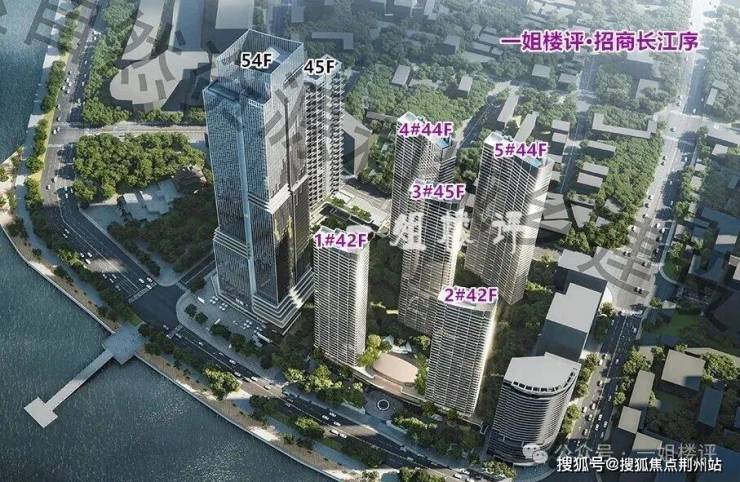 项目一共规划了5栋住宅,均为42-45层的超高层,从朝向来看,全部都是东南向面江设计。