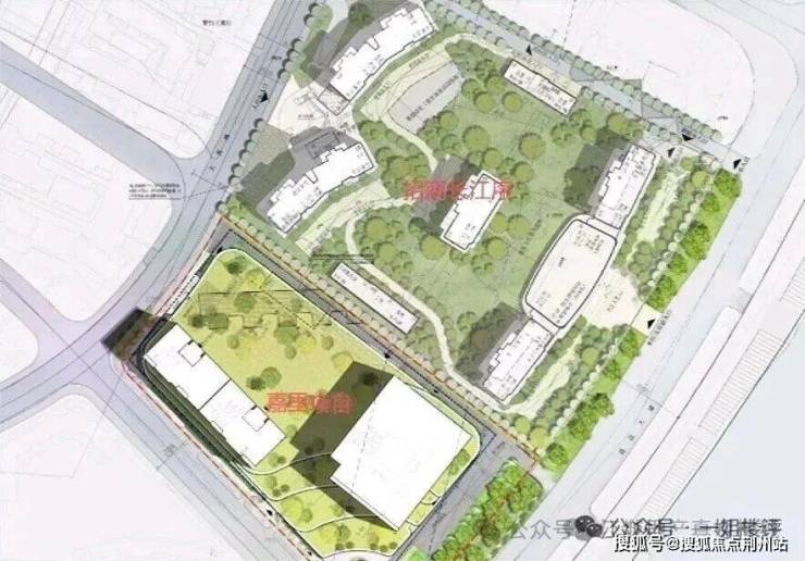 因此一姐猜测,在官方部门协调之下,两个项目同步报规,平面规划图、效果图整合到一起显示,估计是协调了相互之间的日照关系。