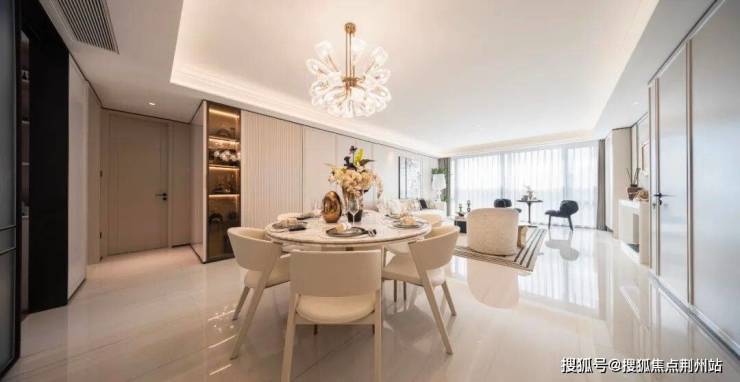 LDKB一体化大通厅,面积达到了约45㎡,这里容得下家族团聚的八人圆桌,也摆得下岩板长桌。