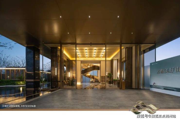 主入口约29米宽大门,恢弘迎宾;金属压顶、温润石材彰显高级感。循着连廊步入归家水庭,镜面水景,绵绵跌水。