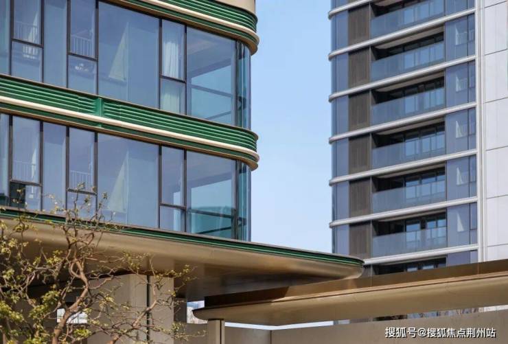 蕙澜月华在这个基础上又做了提升,陶板面积增加了,曲线和沿口的细节更丰富了,整体色系很温润,不像很多玻璃幕墙建筑那样冷冰冰的。