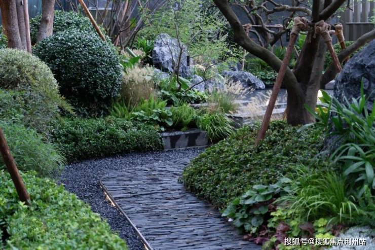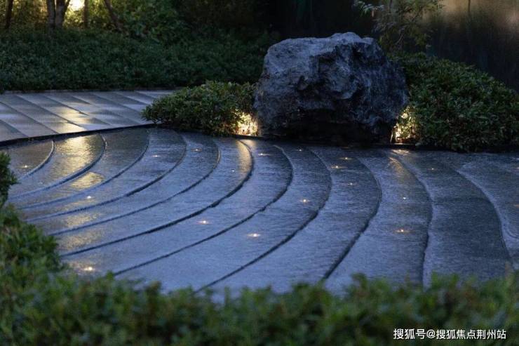 穿过门楼转入花园,景观置石与植物组团之间的穿插咬合为归家花园谱写了开篇。植物优雅伸展着枝丫述说着时光的故事,潺潺叠水让此静谧空间鲜活起来。在自然与艺术共存的空间里,找到无可复制的专属惬意时刻,创造一种富有格调的艺术生活场景。