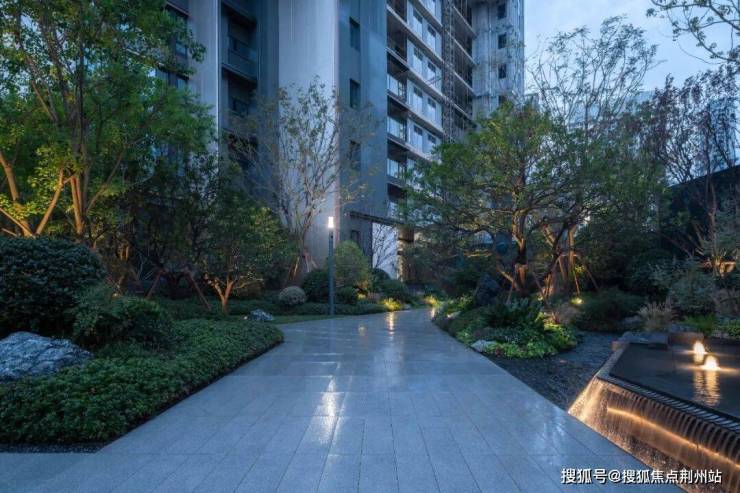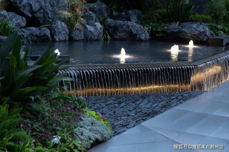 归家路上异形跌水的呈现是优雅形态与高精度施工的完美配合,需要克服诸多细节上的问题。如水流方向的调试、跌水面平整度的调试、水流量大小的控制等等,经过现场反复调试打磨,最终得以呈现出较好的落地效果。