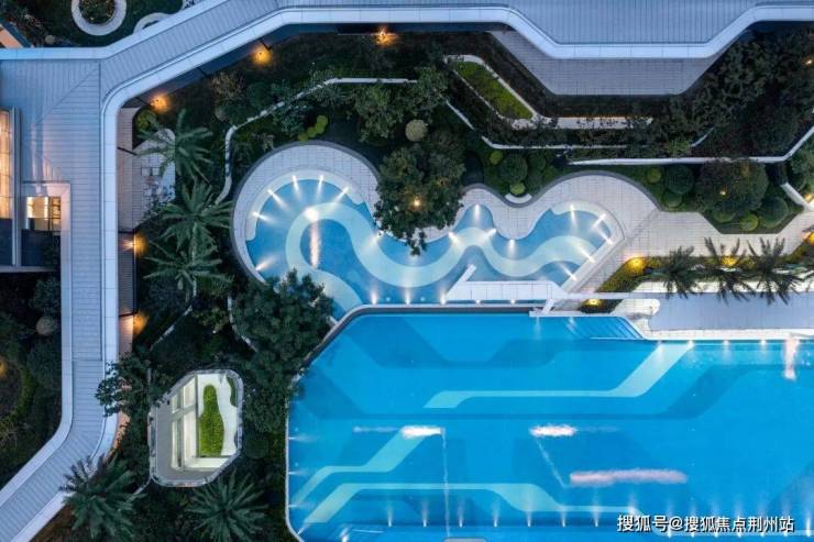 一座梦幻感的度假风特色泳池,如一颗不规则的宝石掩映在信达中心|杭州壹号院的中心园林之间,远远望去,高差与叠水的巧妙让泳池仿佛漂浮于空中,这一方承载着欢笑与成长的空间,增添了生活的无限乐趣。夏天,这抹都市生活里的蔚蓝,打开一种既可观赏又可畅游的生活方式。