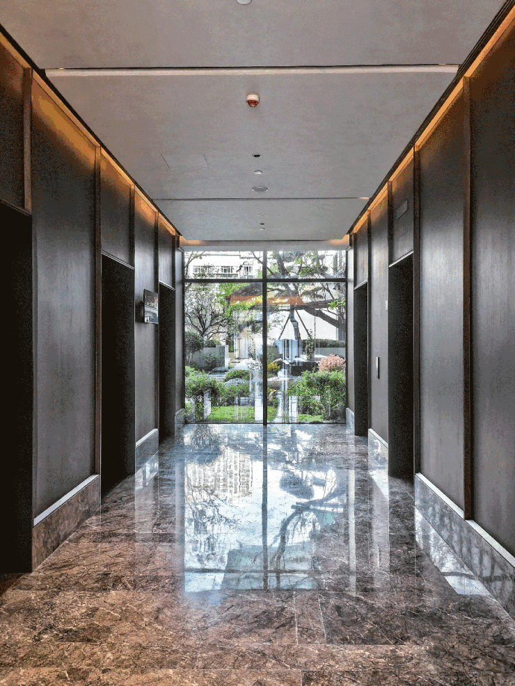 就连电梯内部,也有百达翡绿奢石“武装”,候梯时,亦可透过落地玻璃窗欣赏窗外风景!