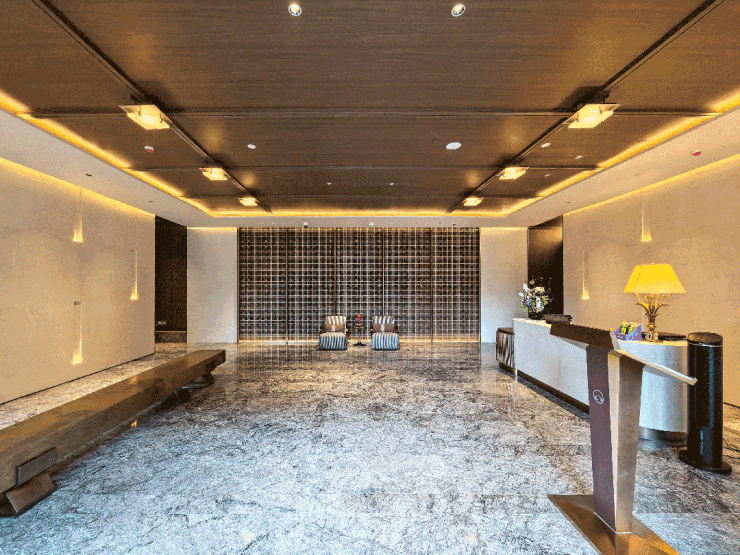 酒店式尊奢归家门仪归家连廊与大门一体化设计,为业主遮风避雨。单元门厅挑高设计,大堂地面为安达仕酒店同款石材,贵气不彰自显!