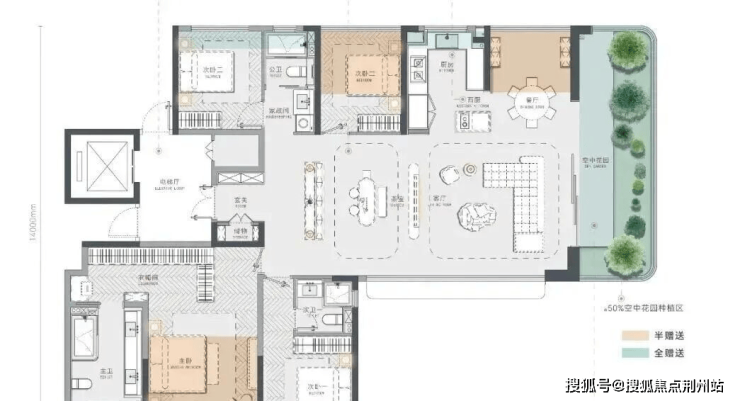 *公摊比例为实际测算所得,各户型实际使用面积(套内面积+电梯厅面积+露台面积)均大于建筑面积
