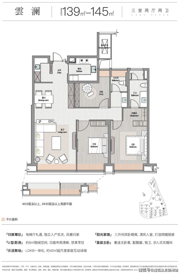 •独特归家动线: 6F入户设计,客厅与最佳观湖视野无缝衔接,尽享“一步到位”的巅峰体验;