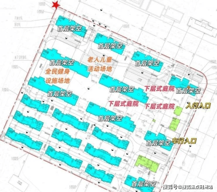 项目6栋小高层/高层+4栋洋房均首层架空设计,靠近人行入口处的2栋洋房均带下沉式庭院,应该布局了泛会所功能。