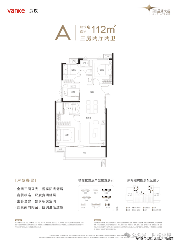 目前主推的3号楼为33层,2个单元,2梯4户设计,包含建面约94-112平房源,均为三房设计。