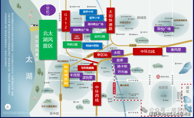 「交通」中环西线北延、312国道、太阳路、高铁新城区站、地铁3号线浒关站、硕放机场