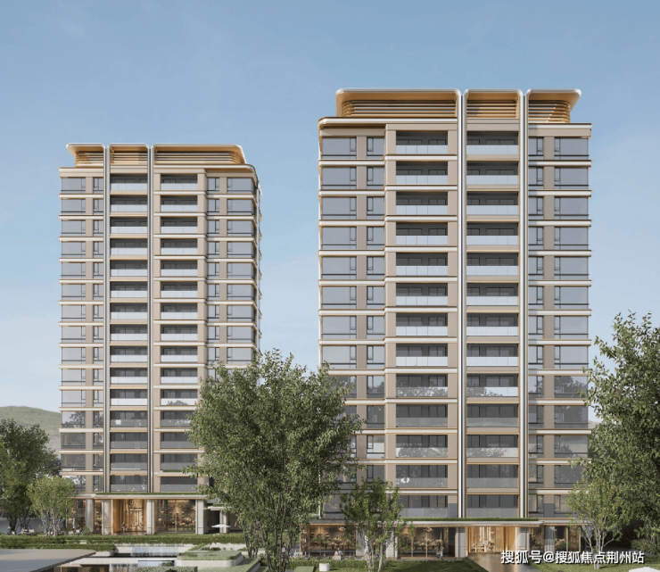 外立面采用大面积石材+铝板+玻璃幕墙,对标14万+豪宅级材质组合。