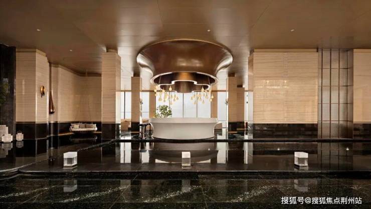 弧线曲面建筑外立面,约64米的巨幅金色拱形艺术门厅,给予了观者第一眼的视觉冲击。
