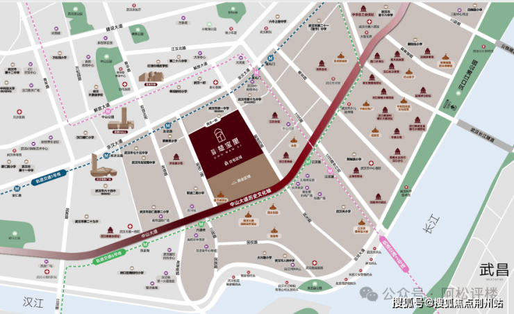 项目在地段方面的价值维度从大到小可以概括为三大关键词:中山大道、汉口历史风貌区、民众乐园。