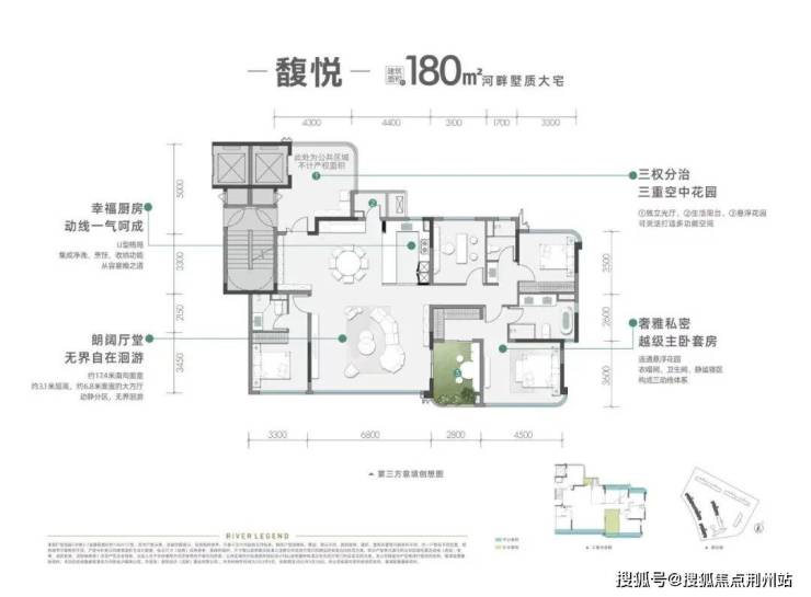 从平面图可以看出143m²还有不一样的户型。180m²四室两厅三卫户型也不错,有个洄游的观景阳台,独立的生活阳台。