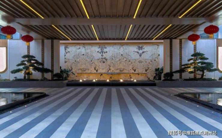 在地下车库设计上,车行坡道为大面积大理石纹岩板,入口采用具有光泽感的金色铝板材质,无不体现高级质感。车行坡道下方,更为业主特别定制了一座铝板星空穹顶,照亮每位业主的归家之路。