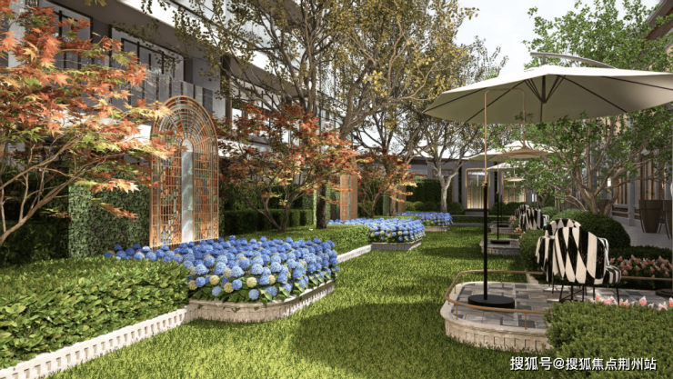 另外,下沉庭院东侧是织梦奇园,兼具趣味感和互动感的儿童乐园。海派生活轴的端点是邻里交互的艺术花园,是业主茶余饭后散步的好去处。