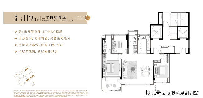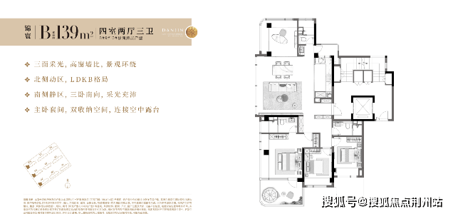 建面约119㎡、129㎡、139㎡、188㎡空中花园住区,约94%-112%高空间使用率,LDKB一体化设计,重塑空间想象。