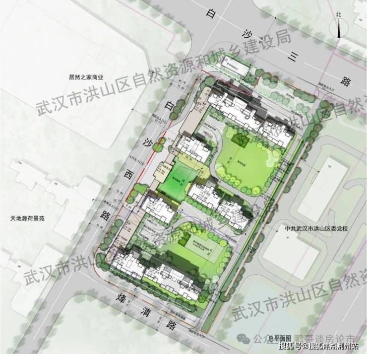 2026年2月12日,武汉城建白沙置业有限公司申报的洪山区委党校西侧地块项目武汉城建|白沙嘉序位于洪山区白沙三路与白沙西路交汇处。其规划方案、总平面图、日照及效果图等内容如下: