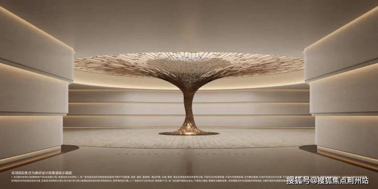项目的会所「生机之亭」,是特邀国内顶奢上海翠湖天地的设计团队「集艾设计」执笔打造,采用折衷轻法风格,整体高约14米,镶嵌四根高耸入云的“生机之树”,撑起巨大的三层观景门廊,用约8吨不锈钢精雕细琢,犹如展开的飞翼,传达生机勃勃的意象。