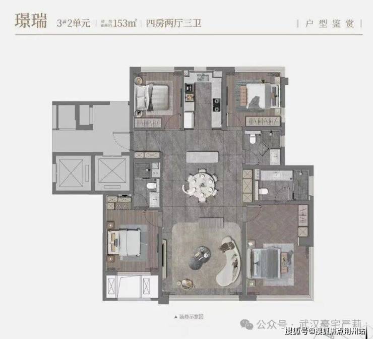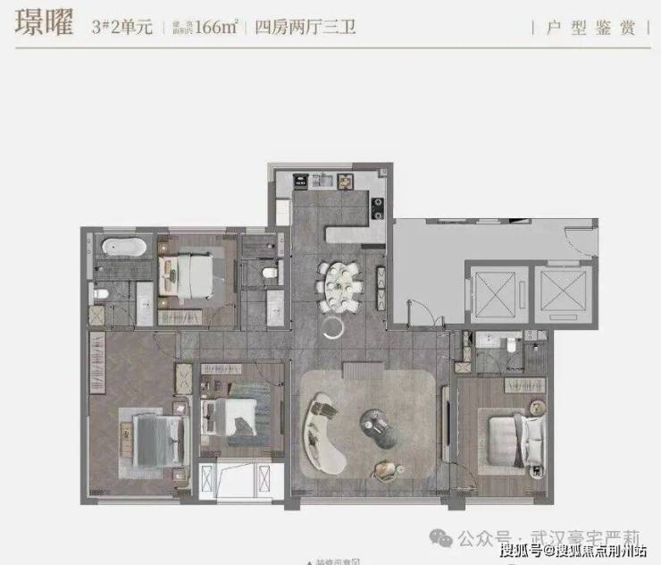 153㎡是“四叶草”格局,四个卧室全分开,互不干扰;