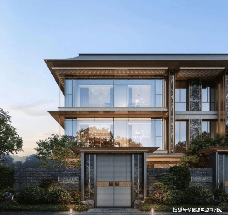 建筑风格:融合东方美学与现代工艺,以“石材+一体板+金属”为基底,点缀宝石蓝奢石,营造低调奢华的质感。