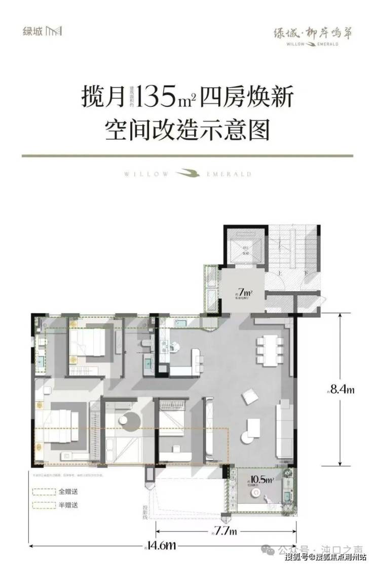 绿城·柳岸鸣翠建面约135㎡,是目前区域内备受关注的畅销户型。可变4+1室两厅两卫设计,经过无数次细节研磨,以超强的可塑性空间,完成一次家庭生活场景的革命,只为满足居住者对空间多元化的需求。