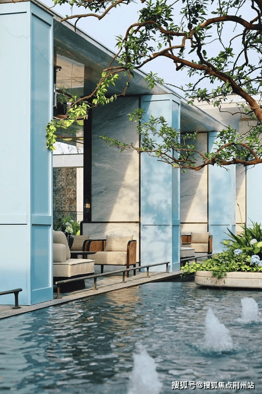公区配置:下沉式庭院、恒温泳池、健身房、会客厅等设施齐全,公区采用四面铝板外立面,设计风格现代。