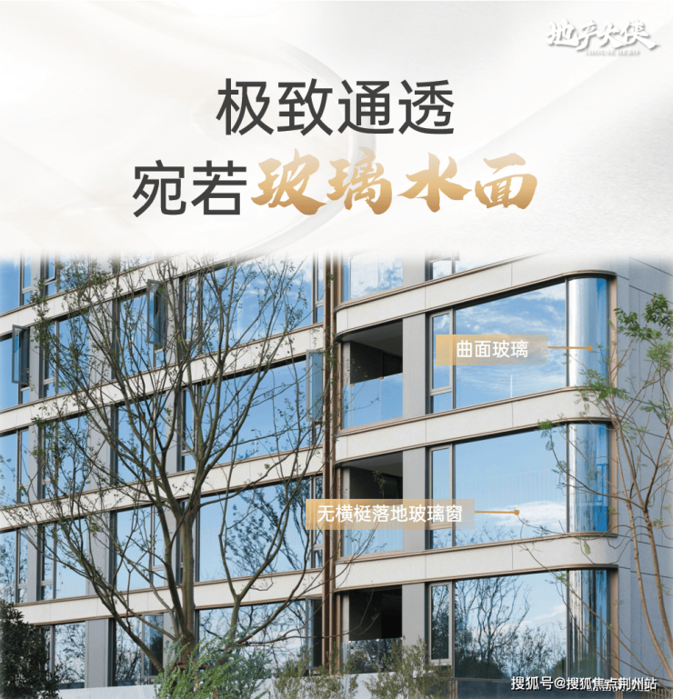 更值得一提的是超配的窗地比,配合极简的窗框设计,大幅消隐了横向与竖向的遮挡结构,形成一片片通透流畅的「玻璃水面」。