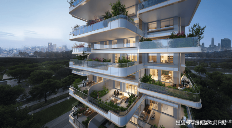 项目以曲面转角院落+南北双花园的创新设计,打造户均约30-50㎡空中庭院矩阵。最大约75㎡可使用露台面积,相当于将一整套普通刚需小户型的空间馈赠给生活。在这里,「平层墅化」不再是空谈,而是通过立体绿化系统实现「前庭后院」的墅居体验。
