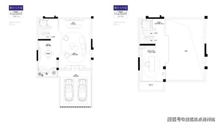 地下空间挑空设计,可以打造成社交客厅、兴趣爱好空间、私人车库。