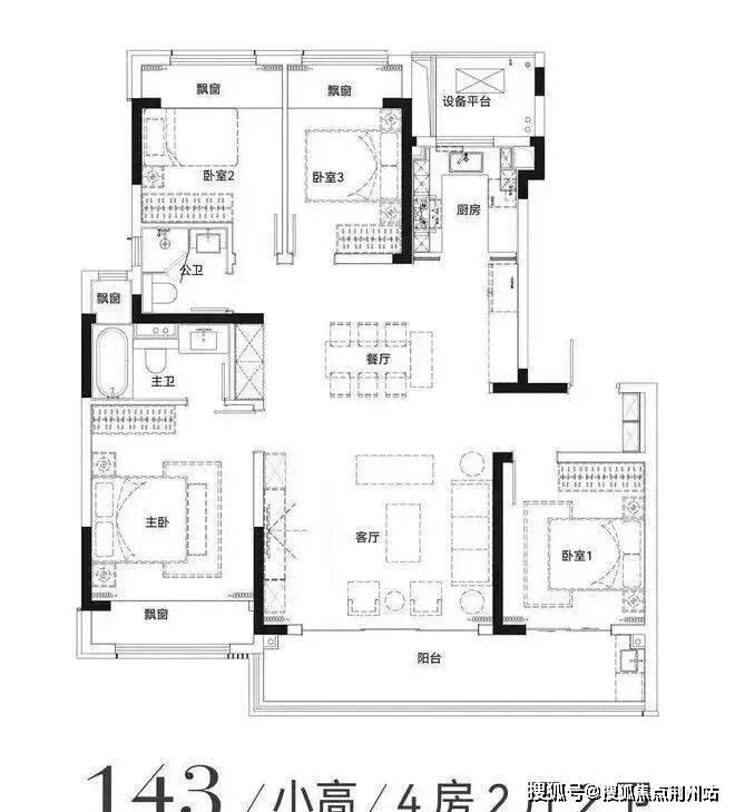 户型简介:建面约143㎡ 4房2厅2卫
