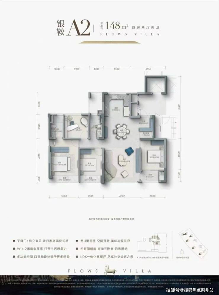 还有这款建面约148方户型,做的4房2卫,就简单介绍下。
