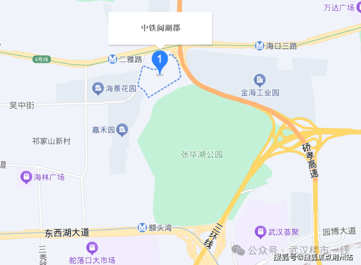 中铁阅湖郡位于东西湖区金山大道和吴中街交汇处。